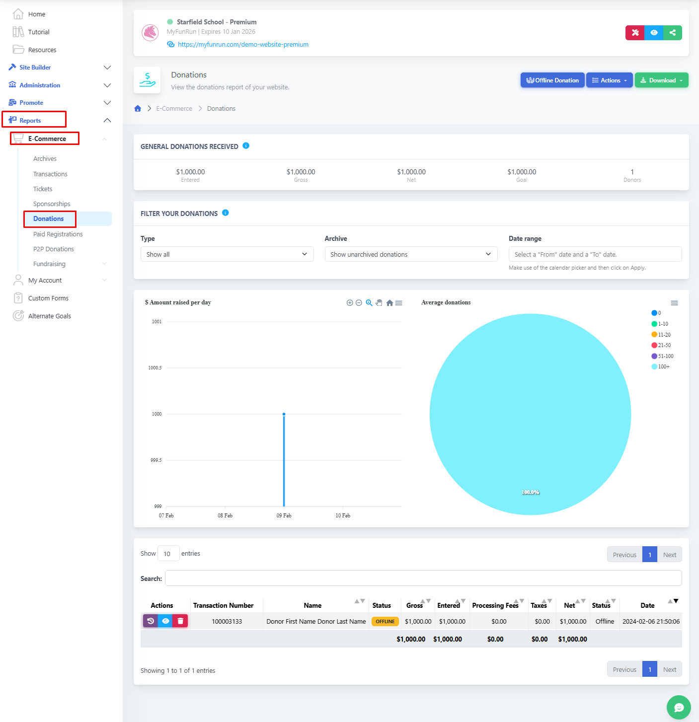 Visit Reports → E-Commerce → Donations.